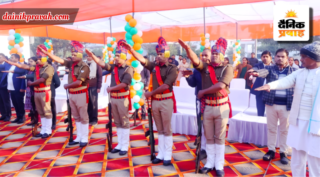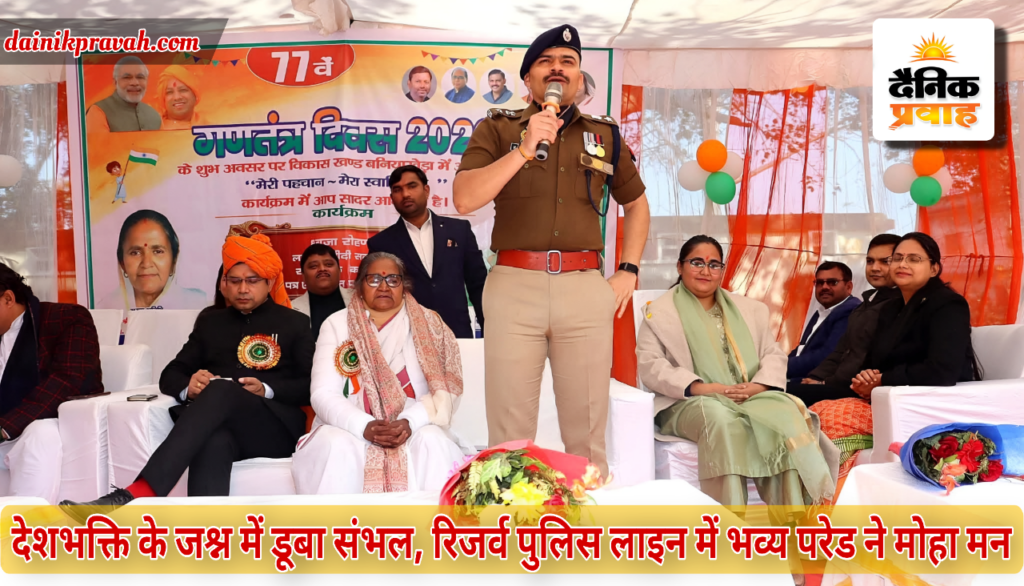 प्रवाह ब्यूरो संभल। संभल में भव्य तरीके से गणतंत्र दिवस पर कार्यक्रम आयोजित किए गए तो वहीं 77 वें गणतंत्र दिवस के अवसर पर बहजोई रिजर्व पुलिस लाइन में माध्यमिक शिक्षा राज्य मंत्री ने ध्वजारोहण किया तथा तिरंगे को सलामी देकर परेड का आयोजन किया गया। जिसमें जवानों द्वारा हर्ष फायरिंग करते हुए झंडे को सलामी दी गई तो वहीं कलेक्ट्रेट परिसर में जिलाधिकारी ने ध्वजारोहण किया।