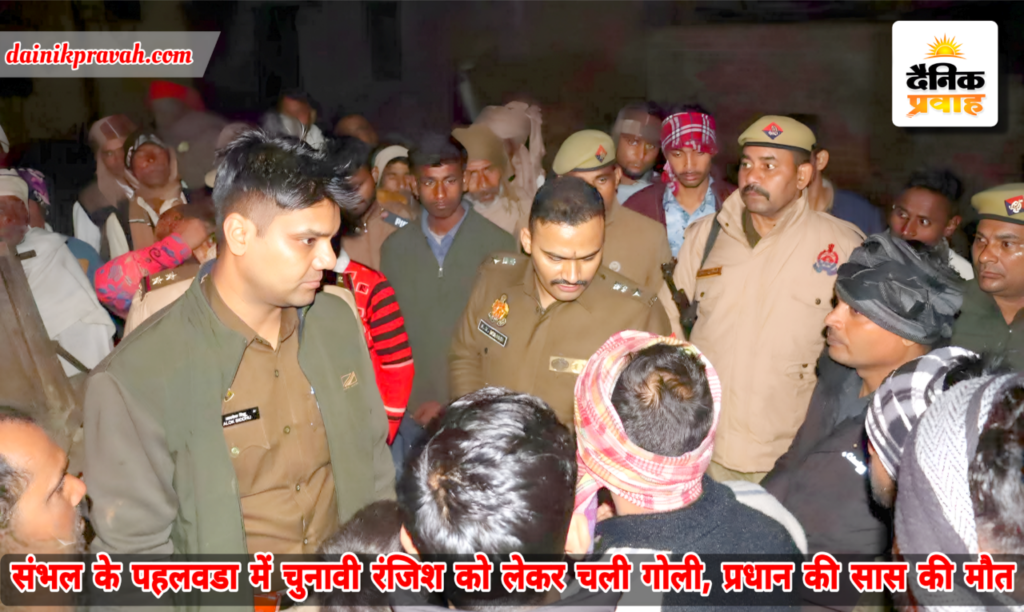 प्रवाह ब्यूरो संभल। बबराला के थाना क्षेत्र के पहलवड़ा गांव में शुक्रवार रात चुनावी रंजिश को लेकर हुई फायरिंग में ग्राम प्रधान की सास की गोली लगने से मौत हो गई। घटना के दौरान दूसरे पक्ष का एक युवक भी गोली लगने से घायल हो गया, जिसे इलाज के लिए अस्पताल में भर्ती कराया गया है। घटना की सूचना मिलते ही एसपी कृष्ण बिश्नोई मौके पर पहुंचे और स्थिति का जायजा लिया। पुलिस ने शव को कब्जे में लेकर पोस्टमार्टम के लिए भेज दिया है। वहीं, घायल युवक का उपचार जारी है। गांव पहलवाड़ा में शुक्रवार की रात करीब 9 बजे चुनावी रंजिश ने हिंसक रूप ले लिया। जहां दोनों पक्ष आमने-सामने आ गये। कहासुनी बढ़ने के बाद दोनों पक्षों में फायरिंग शुरू हो गई। फायरिंग के दौरान ग्राम प्रधान मीरा देवी की सास प्रेमवती (52) के सीने में गोली जा लगी। जिससे उनकी मौके पर ही मौत हो गई। वहीं दूसरे पक्ष के देवेश (26) के कान में गोली लगने से वह घायल हो गया। उसको परिजनों ने उपचार के लिए निजी अस्पताल में भर्ती कराया है। घटना की सूचना मिलते ही बबराला थाना पुलिस मौके पर पहुंची और स्थिति को नियंत्रित किया। एसपी कृष्ण कुमार बिश्नोई ने मौके पर पहुंचकर घटना की जानकारी ली। एसपी कृष्ण बिश्नोई ने बताया कि गांव पहलवाड़ा में गोली लगने से एक महिला की मौत मौत हो गई। जहां फोरेंसिक जांच के साथ तीन टीमें लगाई गई हैं। शव पोस्टमार्टम के लिए भेज दिया गया है। घायलों का उपचार कराया जा रहा है। विधिक कार्रवाई जारी है। गांव में तनाव को देखते हुए अतिरिक्त पुलिस बल तैनात कर दिया गया है।