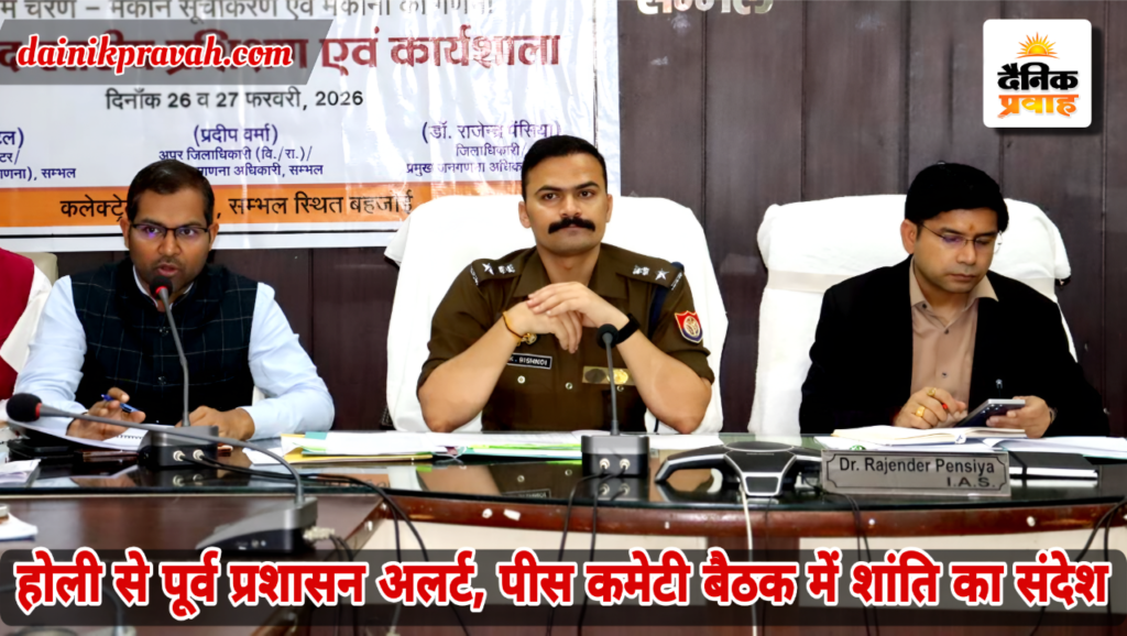 संभल। संभल में होली, रमजान और ईद के त्यौहारों को लेकर जिला स्तरीय पीस कमेटी की बैठक आयोजित की गई। जिलाधिकारी डॉ. राजेंद्र पैंसिया और पुलिस अधीक्षक कृष्ण कुमार बिश्नोई की अध्यक्षता में हुई इस बैठक में नई परंपरा डालने पर कड़ी कार्रवाई की चेतावनी दी गई। अधिकारियों ने बताया कि जिले में 64 जुलूस, 1215 होलिका दहन और 17 मेले लगेंगे। बैठक शनिवार शाम 3:30 बजे शुरू होकर 5:30 बजे समाप्त हुई।जहांहोली के त्यौहार को शांतिपूर्ण और सौहार्दपूर्ण वातावरण में संपन्न कराने को लेकर प्रशासन पूरी तरह सतर्क है। शनिवार को पूर्व कलेक्ट्रेट सभागार में पीस कमेटी की बैठक आयोजित की गई, जिसमें जनप्रतिनिधि, धर्मगुरु, समाजसेवी और विभिन्न संगठनों के पदाधिकारी मौजूद रहे।