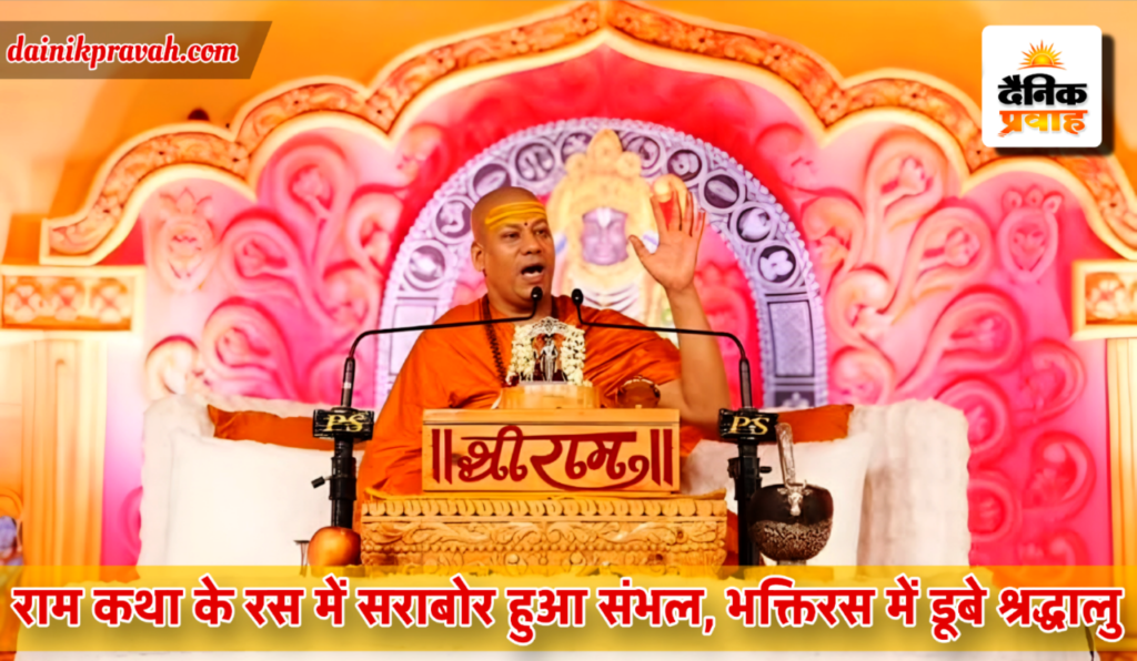 संभल। जनपद की पावन धरा इन दिनों भक्ति और आस्था के रंग में रंगी हुई है। बहजोई के बड़े मैदान पर आयोजित श्रीमद् राम कथा में दूर-दूर से श्रद्धालु पहुंचकर धर्म लाभ ले रहे हैं। जहां श्री राम कथा के तीसरे दिन निरंजनी अखाड़ा के महामंडलेश्वर कैलाशानंद गिरि ने मर्यादा और भक्ति का संदेश दिया। जहां कथा के दौरान पूरा वातावरण राममय हो गया है और श्रद्धालु राम कथा के रस में सराबोर नजर आ रहे हैं। महामंडलेश्वर कैलाशानंद गिरि महाराज ने अपने प्रवचनों में अयोध्या, मथुरा और संभल की धार्मिक महिमा का विस्तार से वर्णन किया। उन्होंने कहा कि आज संभल भयमुक्त है और यहां रहने वाला हर व्यक्ति “राम-राम” कहता है। उनके विचारों ने श्रद्धालुओं के मन में भक्ति और विश्वास की नई ऊर्जा भर दी।