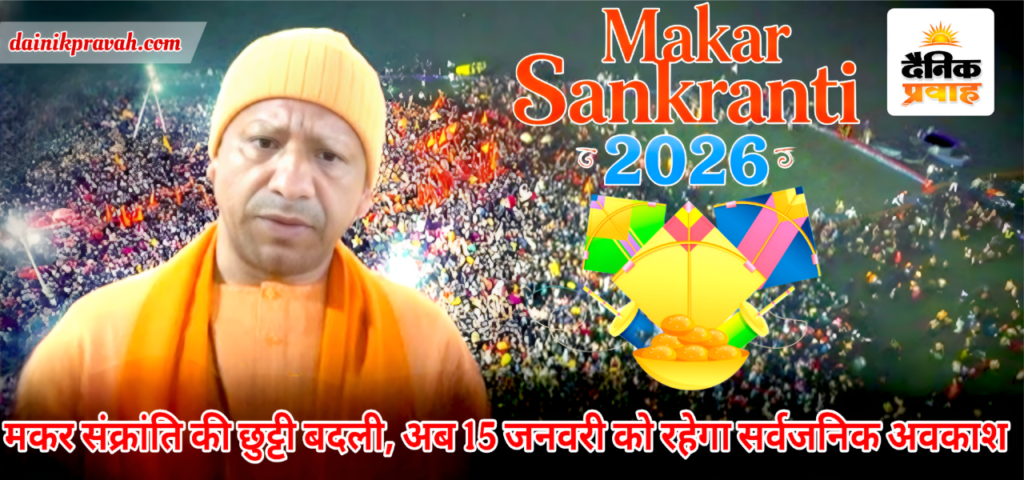 प्रवाह ब्यूरो लखनऊ। मकर संक्रांति को लेकर उत्तर प्रदेश सरकार ने एक अहम फैसला लिया है, जिससे लाखों कर्मचारियों, छात्रों और दफ्तरों की योजना अब नए सिरे से बनेगी। बता दें कि प्रदेश की योगी सरकार ने मकर संक्रांति के अवकाश में बदलाव किया है। पहले सरकार ने 14 जनवरी 2026 को निर्बंधित (वैकल्पिक) अवकाश घोषित किया था, लेकिन अब इसकी जगह 15 जनवरी 2026, गुरुवार को सार्वजनिक अवकाश रहेगा। जिसके लिए शासन ने संशोधित आदेश भी जारी कर दिया है। नए आदेश के मुताबिक अब 15 जनवरी 2026 (गुरुवार) को प्रदेशभर में सार्वजनिक अवकाश रहेगा। इससे पहले यह अवकाश 14 जनवरी 2026 (बुधवार) के लिए घोषित किया गया था।