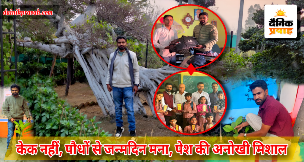 प्रवाह ब्यूरो संभल। सोमवार को पर्यावरण संरक्षण और समाज सेवा का प्रेरक उदाहरण पेश करते हुए पेशे से प्रधान अध्यापक बृजेश धनगर ने अपने जन्मदिवस को सादगी और सार्थकता के साथ मनाया। उन्होंने केक काटने के बजाय 108 पौधों का रोपण कर जन्मदिन को हरियाली के उत्सव में बदल दिया। जन्मदिवस के अवसर पर उन्हें मित्रों, परिजनों एवं शुभचिंतकों की ओर से व्यक्तिगत एवं सोशल मीडिया आदि माध्यमों से बधाई देने वालों का तांता लगा रहा। जहां उत्तर प्रदेश सरकार में एससी-एससटी आयोग की सदस्य गीता प्रधान, लोकप्रिय पत्रकार, प्रखर वक्ता डा. गौरव उन्मुक्त एवं पिछड़ा वर्ग आयोग के प्रदेश उपाध्यक्ष सोहनलाल श्रीमाली जी ने भी उन्हें बधाई देते हुए आशीर्वाद प्रदान किया। इस अवसर पर बृजेश धनगर ने कहा कि आज के समय में पर्यावरण संरक्षण सबसे बड़ी आवश्यकता है और प्रत्येक व्यक्ति को अपने जीवन के खास पलों को प्रकृति से जोड़ना चाहिए। पौधारोपण न केवल पर्यावरण को स्वच्छ बनाता है, बल्कि आने वाली पीढ़ियों के लिए बेहतर भविष्य की नींव भी रखता है। कार्यक्रम में स्थानीय लोगों व युवाओं ने बढ़-चढ़कर भाग लिया और पौधों की देखभाल का संकल्प भी लिया। इस अवसर पर उनकी मां सावित्री देवी ने भी उन्हें आशीर्वाद प्रदान करते हुए इस सराहनीय पहल को निरंतर बनाए रखने के लिए प्रेरित किया। इस पुनीत कार्य में में उनकी धर्मपत्नी भी पीछे नहीं रही जहां उन्होंने पति के जन्म दिवस के उपलक्ष्य में स्कूली छात्रों को कपड़े आदि वितरित कर जन्मदिन मनाया।