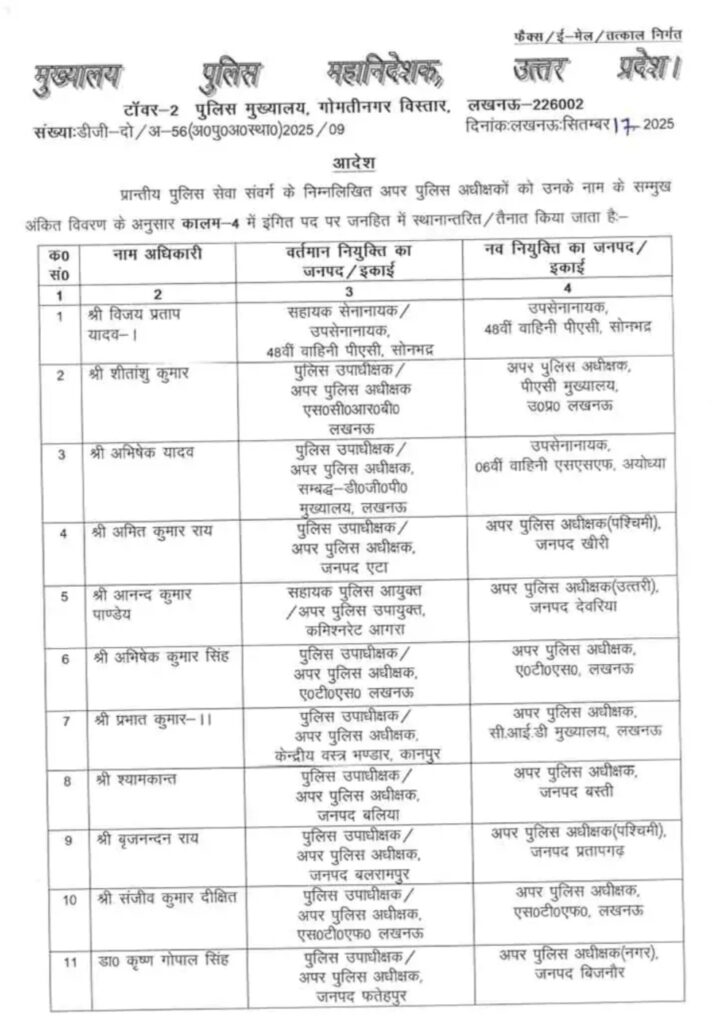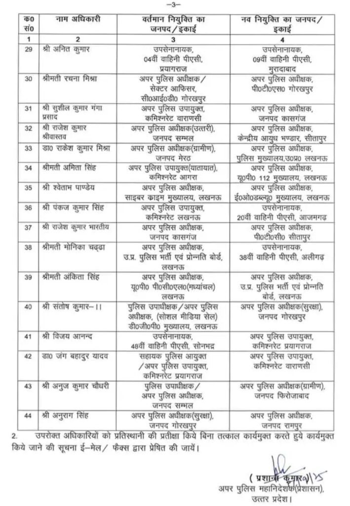 उत्तर प्रदेश सरकार ने बुधवार को 44 पुलिस अफसर का ट्रांसफर कर दिया है। जिसमें सीओ से एएसपी बनने वाले 17 पुलिस अधिकारी भी शामिल हैं। इसके साथ ही 13 डिप्टी एसपी भी ट्रांसफर किए गए हैं। संभल के चर्चित व सीओ से एएसपी बने अनुज कुमार चौधरी संभल में अत्यंत चर्चा में रहे। जामा मस्जिद की सर्वे के दौरान हिंसा को काबू करते समय स्वयं गोली लगने से घायल भी हो गए थे। जिनके पैर में गोली लगी थी। इसके अलावा वह अपने अन्य बयानों को लेकर भी सुर्खियों में रहे हैं। इतना ही एसपी अनुज चौधरी धार्मिक कार्यों में भी बढ़-चढ़कर हिस्सा लेते हैं।