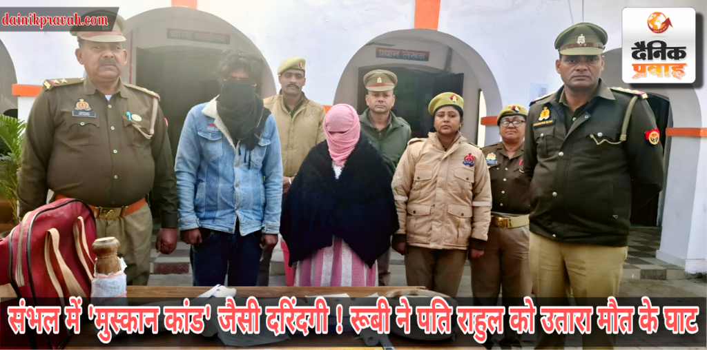 प्रवाह ब्यूरो संभल। संभल में एक दिल दहलाने वाली घटना सामने आई है। जहां पत्नी ने अपने प्रेमी के साथ मिलकर अपने पति की पहले हत्या की और फिर उसके शव को ग्लाइडर मशीन से काटकर गर्दन व हाथ पैर को अलग करके एक पिन्नी में लपेटकर बैग में भर लिया तथा दूसरे बैग में शव के अन्य अंगों को भरकर हाथ पैर गर्दन वाले बैग को राजघाट गंगा में बहा दिया वहीं दूसरे बैग को एक नाले में डाल दिया। और खून के छींटे वाले अपने कपड़ों को जला दिया। जहां पुलिस ने घटना का खुलासा करते हुए मृतक की पत्नी और उसके प्रेमी को गिरफ्तार कर जेल भेज दिया। पूरा मामला संभल के चंदौसी कोतवाली क्षेत्र के मोहल्ला चुन्नी निवासी महिला रूबी ने अपने पति के गुमशुदगी होने की रिपोर्ट बीते 18 नवंबर को दर्ज कराई थी। विवेचना के दौरान पूछताछ में सामने आया कि रूबी के पति राहुल की हत्या उसकी पत्नी ने अपने प्रेमी के साथ मिलकर की थी। जहां पुलिस ने आरोपी महिला रूबी और मोहल्ले के ही उसके के प्रेमी गौरव पुत्र जसवंत को गिरफ्तार कर जेल भेज दिया।