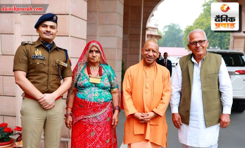 ◆ सम्मान के मंच पर संस्कारों की झलक, कृष्ण बिश्नोई ने माता-पिता को सीएम योगी से मिलवाया।