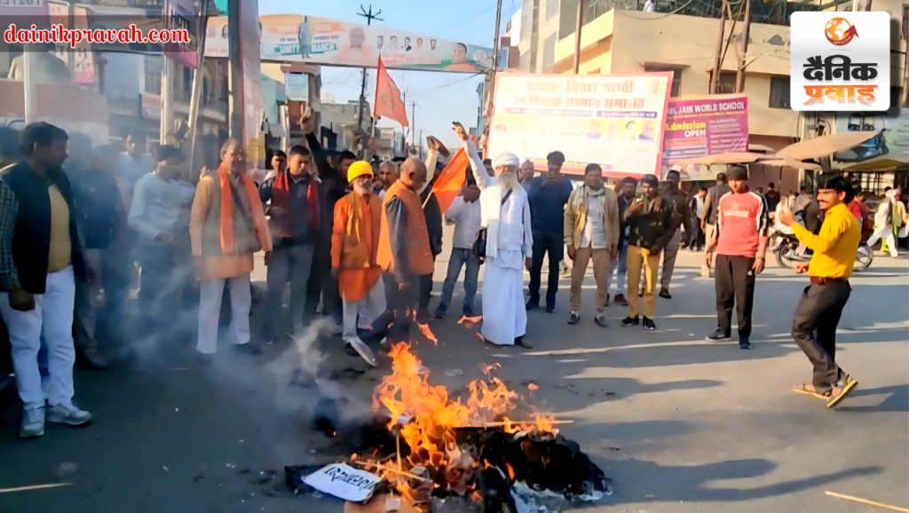 ◆ बबराला में विश्व हिंदू परिषद और बजरंग दल ने प्रदर्शन कर फूंका पूतला।